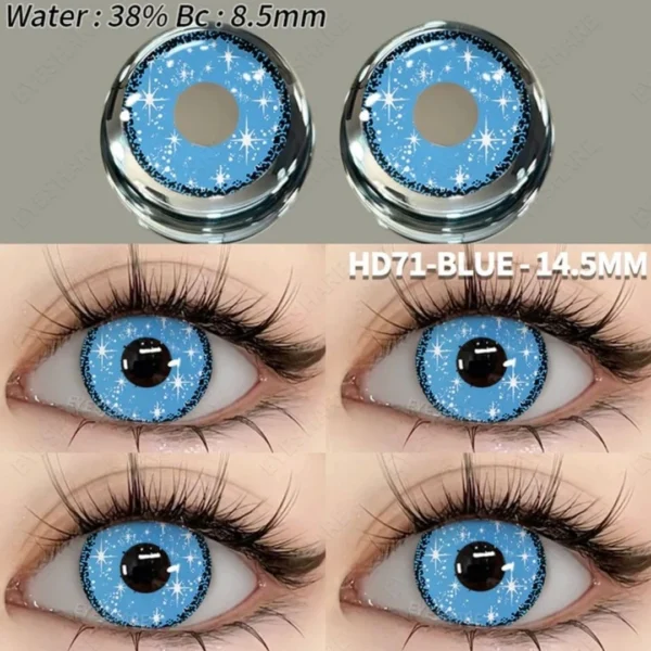Anime cosplay lenses are specialized cosmetic contact lenses with vivid colors, unique patterns, and/or enlarging effects designed to replicate the distinct eye features of anime, manga, and video game characters. They are used by cosplayers to complete the authenticity and striking appearance of their character transformation.